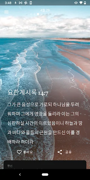 아래는 일일 성경 말씀 어플에 대한 스크린샷 정보입니다.