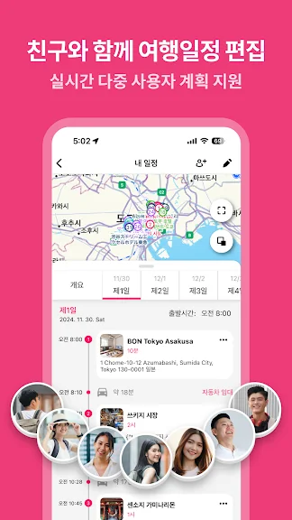 이제 공유함으로서 친구와 함께 여행을 편집하고 계획할 수 있습니다.