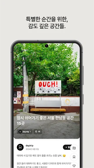 • 다양한 테마로 큐레이션 된 장소를 탐색해 보세요. 트렌디한 카페부터 숨겨진 공간까지, 한눈에 볼 수 있어요.