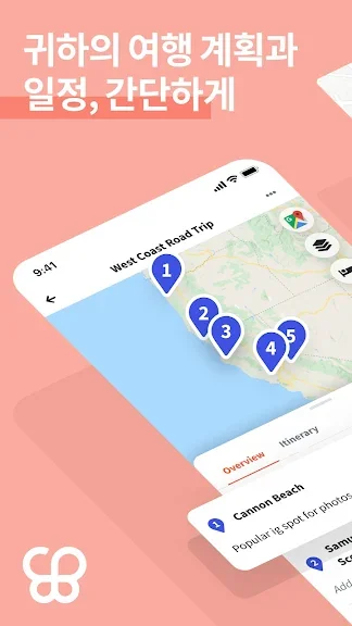 - 🗺️ 여행 지도에서 일정 보기 및 경로 설정 (Roadtrippers와 유사)