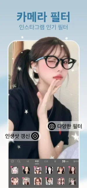 자연스럽고 예쁜 필터와 메이크업은 물론 재미있는 AR 스티커까지! 시즌별로 업데이트되는 효과와 함께 사진 찍는 게 즐거워질걸요?