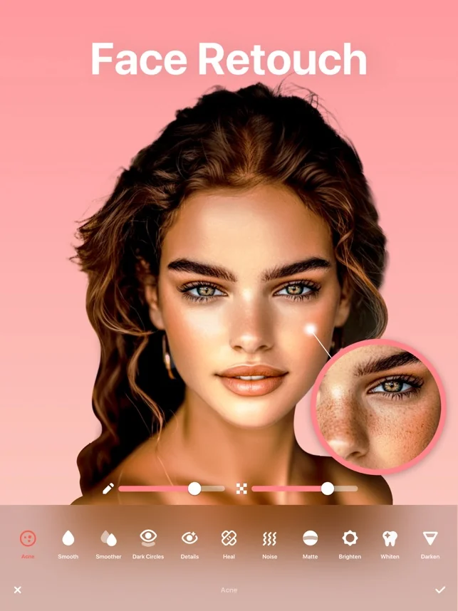 ・ 주름 제거, AI 피부 보정, 잡티 제거: 결점 없이 매끈한 피부 표현