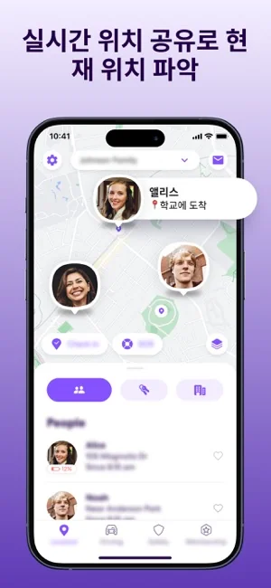 - 지도상에서 가족과 친구의 실시간 위치를 손쉽게 확인합니다.