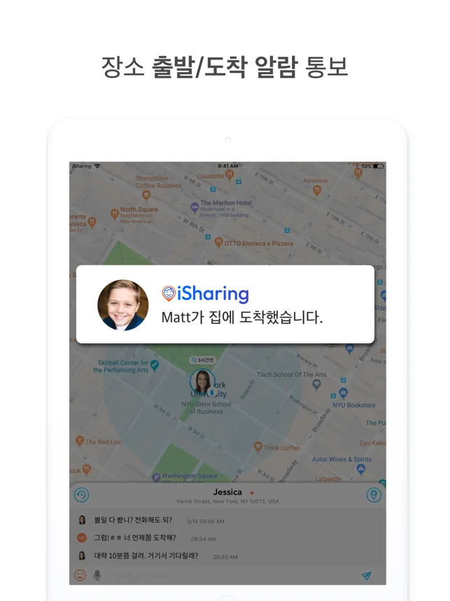 장소 알림: 친구와 가족이 학교에서 집으로 돌아오는 시각, 직장에서 퇴근하는 시각, 운동하러 가는 시각 등을 알 수 있습니다. 다른 일로 바쁜 와중에도 장소 알림을 통해 쉽게 위치를 파악하십시오.