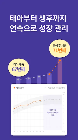 생리주기계산, 배란일계산, 임신확률계산, 임신주수계산, 초음파 수치 자동 분석, 초음파앨범, 태아성장관리, 배테기자동체크, 난임관리, 280일 기록, 다이어리 공유, 육아다이어리, 아이성장발달, 영유아예방접종, 영유아건강검진, 열관리, 해열제 가이드