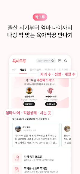 아래는 육아크루 - 동네 육아친구 찾기, 우리 동네 육아앱 어플에 대한 스크린샷 정보입니다.