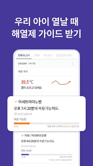 5) 체온을 입력해 아이의 열상태를 확인하고 복용한 해열제를 입력해 교차복용 가이드를 확인해요.