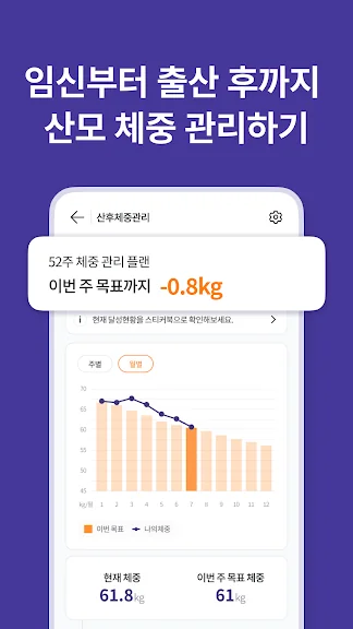 4) 출산 후 늘어간 체중은 매주 마다 목표 체중을 설정해 관리해요.