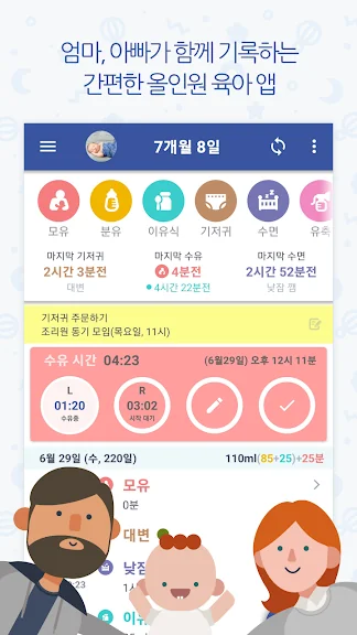 아기의 수유 시간과 수면, 기저귀 교환 시간 정보를 편리하게 기록하는 수유 어플 BabyTime (베이비타임) 입니다. 뿐만아니라, 월령별 맞춤 정보, 성장일기, 자장가 등 육아 필수 기능 하나 하나를 최고의 품질로 만들었습니다.