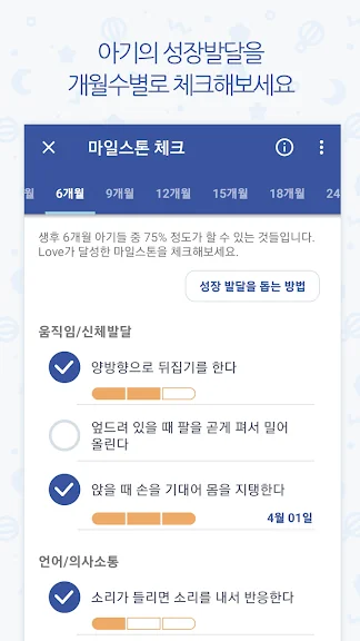 *개월수별 발달 체크 기능 제공