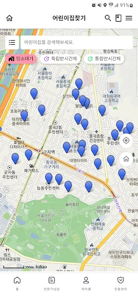 * 어린이집 찾기 : 회원가입 시 등록된 주소지 중심으로 어린이집 검색, 시설유형 및 시설특성별 검색 등 다양한 방법으로 어린이집을 검색하실 수 있으며 평가인증여부, 어린이집 현원/정원, 통학 차량 운행 여부 등 상세하고 정확한 어린이집 정보를 확인할 수 있습니다.