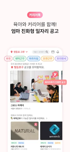 - 워킹맘 모임, 전업맘 모임, 프리랜서 모임, 육아휴직 모임, 20대 맘, 30대 맘, 40대 맘, 쌍둥이 모임, 지역별 육아 모임 모두 육아크루에서 만나요.